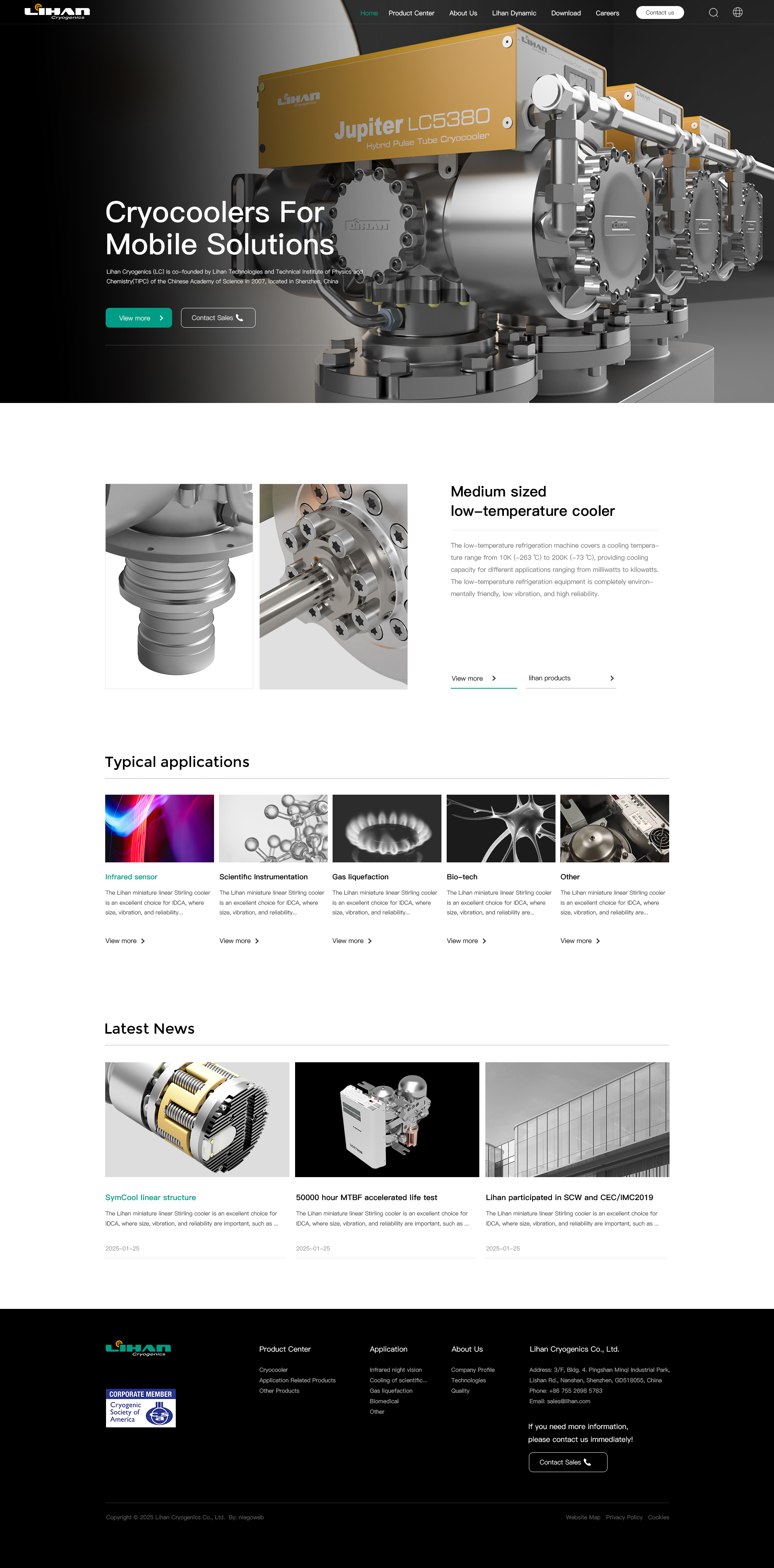中科力函(深圳)低温技术有限公司是一家专注于低温制冷技术的研发设计、批量生产和定制化解决方案的公司。我们的技术基于中国科学院理化技术研究所三十年的热声理论研究基础,并结合十六年的直线电机和电子控制技术的开发实践,目前处于热声技术应用的世界前沿。我们的低温制冷机覆盖了从10K(-263℃)到200K(-73℃)的制冷温度区间,提供毫瓦级到千瓦级不同应用的冷量,具有卓越的技术优势和核心竞争力。