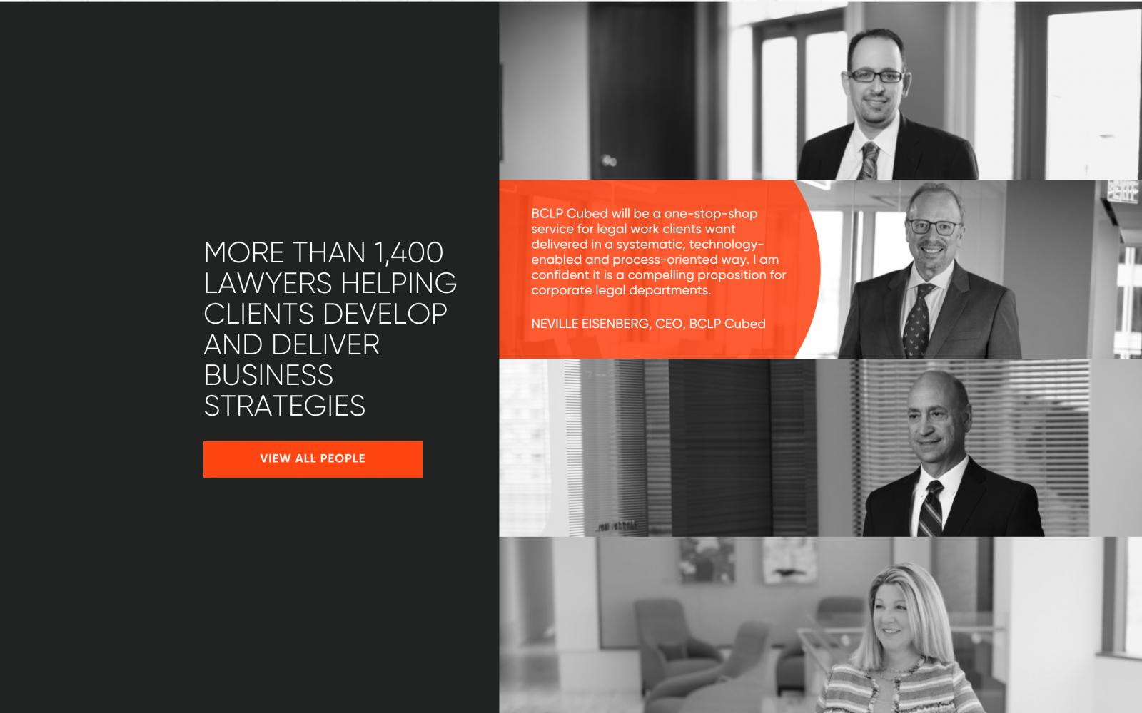 该网站给客户一个简洁而大胆的新品牌印象,以及BCLP能提供什么。